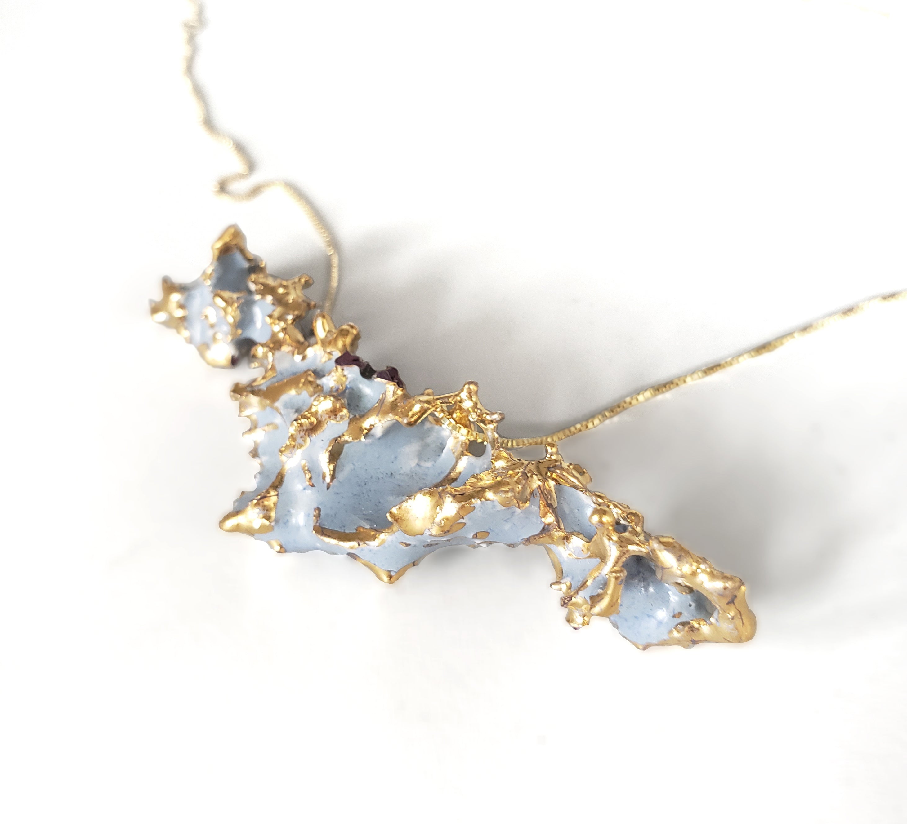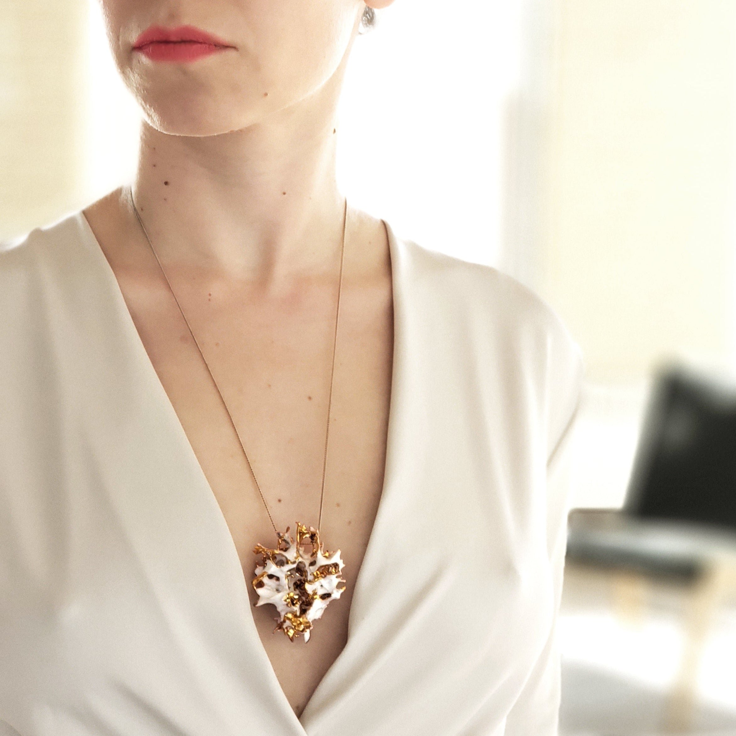 Itır Saran is a Turkish artist, architect and lecturer based in Istanbul and New York. Her work seeks the structure and beauty of natural forms, finding their harmony within. Collecting samples in situ, Itir preserves the origins of these organic elements, frozen in their timeless delicacy. Using ceramic, metal, fiber and an intuitive approach to materials, she creates singular, handmade works of adornment.